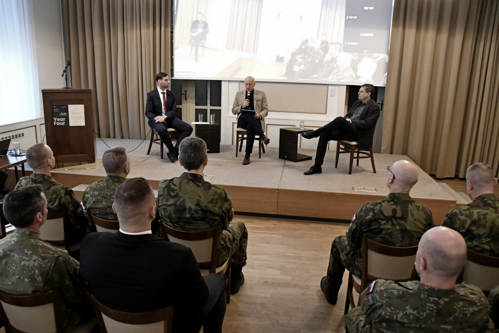 V prvním panelu na téma civilní a vojenské aspekty konfliktu vystoupili Zdeněk Petráš z CBVSS, Pavlína Rehor z European External Action Service a prof. Jan Holzer z Masarykovy univerzity.